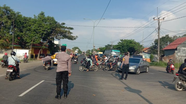 Amankan Arus mudik dan arus balik Pospam Losari – Polresta Cirebon , dengan pengaturan lalu lintas agar pemudik merasa aman dan lancar dalam berkendara.