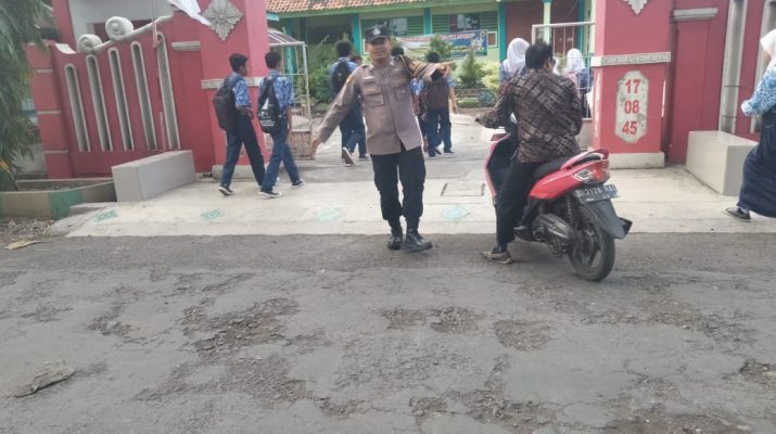 Jajaran Personil Polsek Susukan lebak Polresta Cirebon melaksanakan Gatur Lalu lintas pagi di Jalan raya Susukan lebak depan SMPN2 Susukan lebak Ds. Susukan agung Kec. Susukan lebak Kab. Cirebon.
