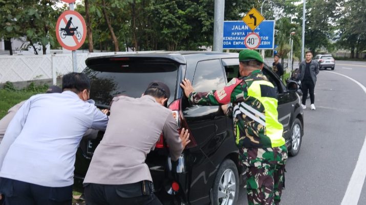Anggota Pos Pam Ciperna Bantu Pemudik Yang Kendaraannya Mogok.