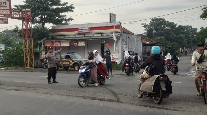 Jajaran Polsek Susukan Polresta Cirebon Polda Jabar, melaksanakan Gatur Lalu lintas pagi di perempatan bunder Kec Susukan Kab Cirebon.