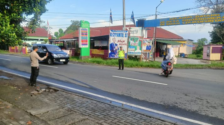 DUKUPUNTANG – Senin (12/02/2024) Personil Polsek Dukupuntang Polresta Cirebon Aiptu Sugianto beserta anggota lainnya, melaksanakan pengaturan arus lalu lintas di depan SMAN 1 Dukupuntang termasuk Jl. Nyi Ageng Serang Desa Sindangmekar Kecamatan Dukupuntang Kabupaten Cirebon.