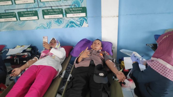 Bhabinkamtibmas Polsek Gempol Polresta Cirebon Polda Jabar Desa Tegalkarang Bripka Nana Febry bersama mitra Babinsa Sertu Supardi melaksanakan monitoring dan berpartisipasi dalam giat Donor Darah yang rutin diselenggarakan di Kantor/Balai Desa Tegalkarang Kecamatan Palimanan Kabupaten Cirebon. Senin (09-01-2023) pukul 09.00.Wib.