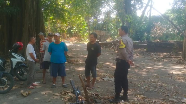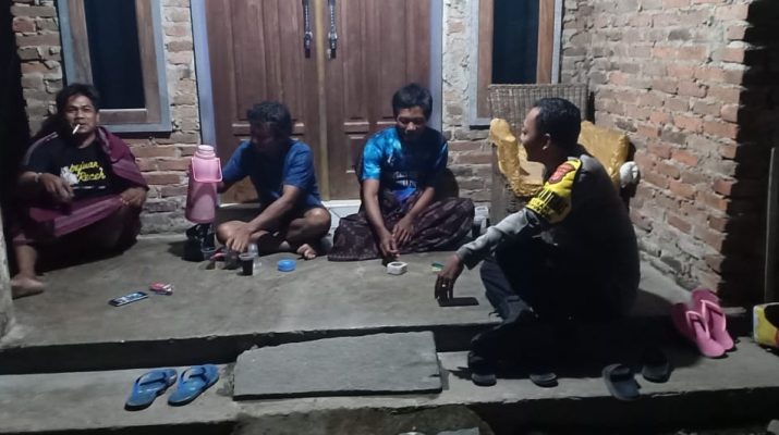 Kapolsek Pangenan IPTU SUKENDRI Kanit Reskrim IPDA INDRA JAYA beserta Kanit Propam AIPDA IMAMA melaksanakan patroli sambang dialogis dengan Warga yang lagi kumpul di