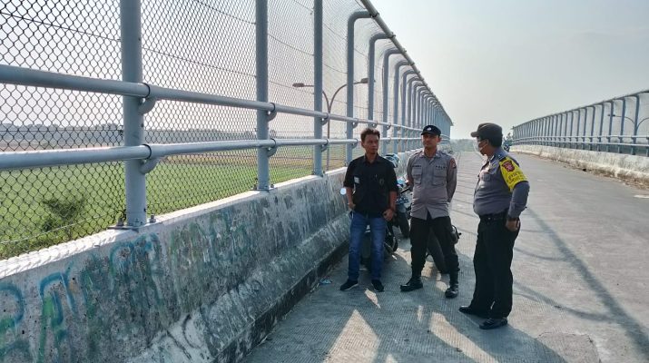 Presiden RI melintas ke arah Jawa tengah lewat tol Kanci Pejagan, Personil Polsek Lemahabang Polresta Cirebon amankan fly over Sigong
