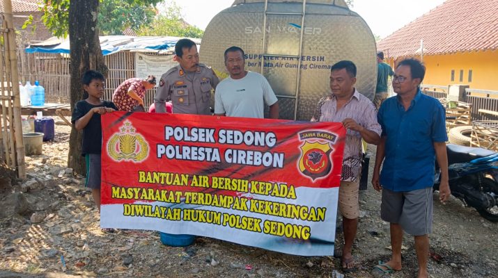 Kapolresta Cirebon melalui Kapolsek Sedong Polresta Cirebon memberikan bantuan air bersih