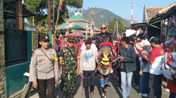Dukupuntang – Antisipasi gangguan Kamtibmas, Bhabinkamtibmas Desa Girinata Polsek Dukupuntang Polresta Cirebon Bripka Yusup, melaksanakan giat Pengamanan dan Pengawalan Jalan Santai dalam rangka memeriahkan