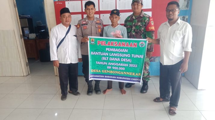 Dalam rangka ciptakan kondusifitas Bhabinkamtibmas desa gembongan Bripka Mahfud bersama Babinsa Kopda johan Monitoring giaz pwmbagian BLT di desa binaan .sinergitas Bhabinkamtibmas Polsek Babakan