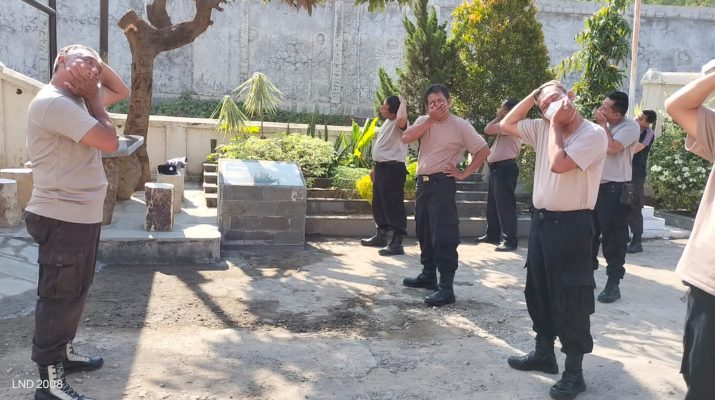 GUNA TINGKATKAN KONDISI FISIK, ANGGOTA POLSEK DEPOK POLRESTA CIREBON RUTIN LAKUKAN OLAHRAGA PAGI
