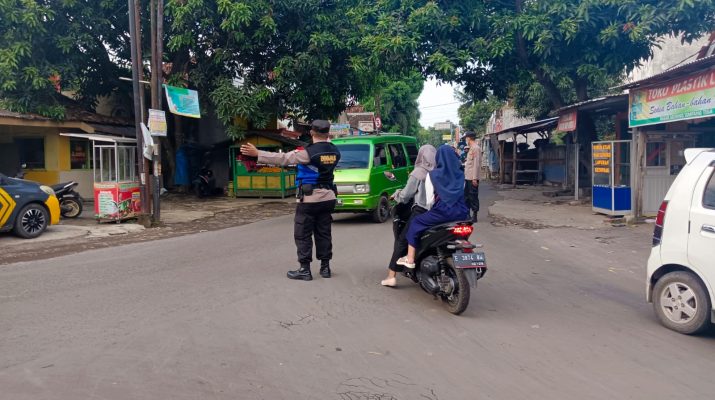 Guna memberikan rasa aman Polsek Sedong melaksanakan PH atau pengaturan dan penjagaan jalan pertigaan pasar Sedong