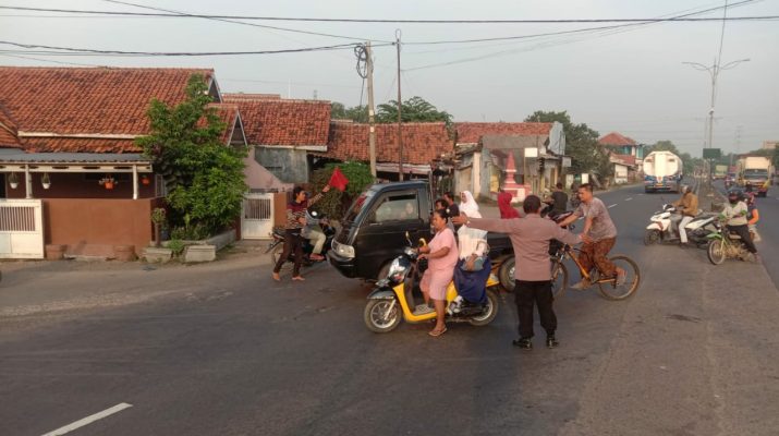 Cirebon – Pengaturan lalu lintas di pagi hari merupakan kewajiban setiap anggota Polri, sehingga perlu didukung dan dilaksanakan dengan semangat oleh anggota Personil Polsek