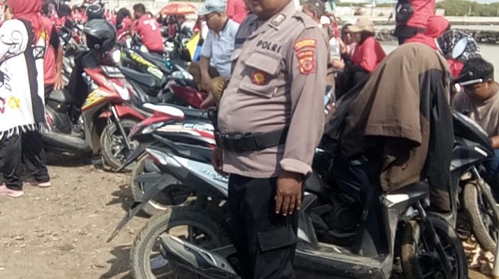 Cirebon – Anggota Polsek Gebang Polresta Cirebon laksanakan pengamanan dan monitoring kegiatan kampanye Caleg DPR RI dari partai PDI Perjuangan Prof.DR. Rokhmin Dauhari, M.S