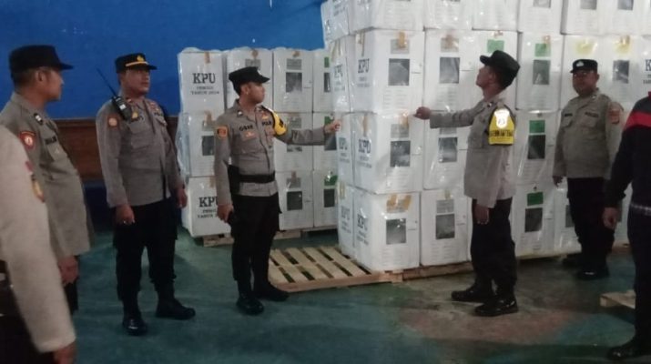 Cirebon – Pasca Pemungutan Suara Pemilu Ta. 2024, Kapolsek Susukan AKP Dwi Susanto SH beserta anggota melakukan pengamanan terhadap gudang logistik Pemilu Tahun 2024