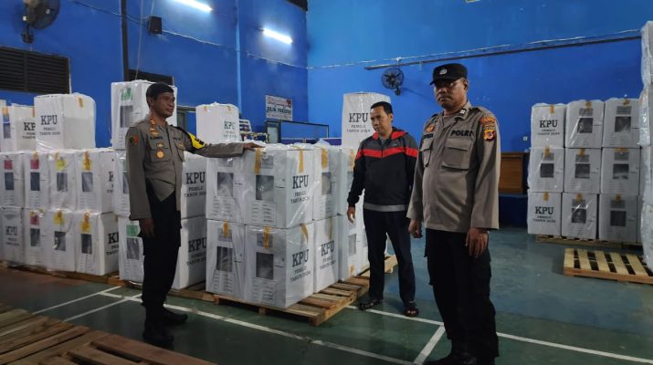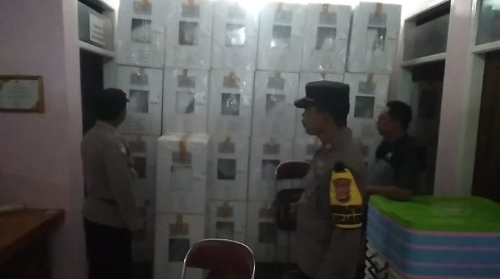 Cirebon – Kapolsek Sedong AKP Ujang Sarifudin, SH. beserta anggotanya mengecek logistik pemilu di gudang logistik PPK Kec. Sedong Kab. Cirebon, wilayah hukum Polsek