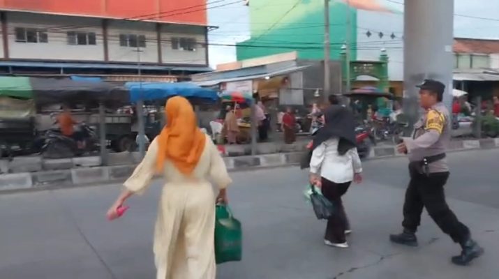 Pengaturan pagi di pasar Gebang, unit patroli Polsek Gebang bantu warga nyebrang jalan
