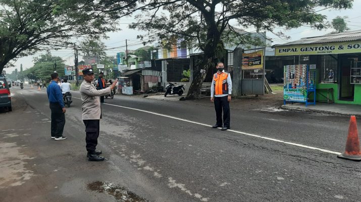 CIREBON – Aipda Warno dan Serka Mahfudin selaku Bhabinkamtibmas dan Babinsa Desa leuwidingding Polsek Lemahabang, melaksanakan pengaturan dan penjagaan lalu lintas pagi hari di