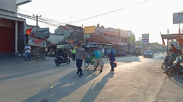 Panit Binmas Polsek Lemahabang Polresta Cirebon Iptu Ade Thomas bersama anggota laksanakan Patroli kamtibmas dan pengaturan lalu lintas pagi hari antisipasi kemacetan dan kecelakaan