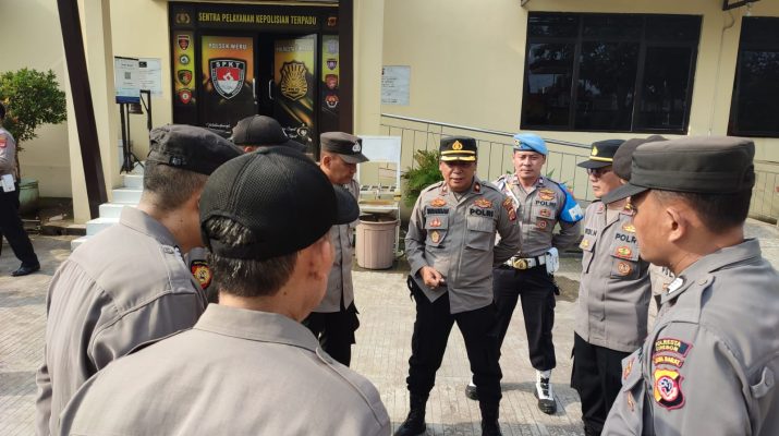 Weru – Kapolresta Cirebon Kombespol Arif Budiman, S.I.K., M.H melalui Kapolsek Weru, Kompol Sudarman memberikan arahan ke anggota SPKT dan Samapta dalam menunjang kedinasan