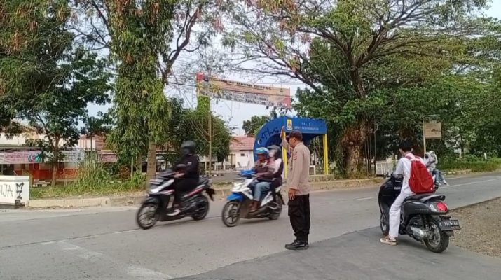 Bripka Aris Pengaturan Lalu Lintas Pagi Hari