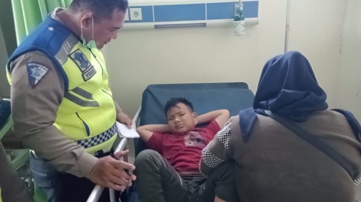 Anggota Pos Pam Jungjang berikan semangat kepada anak yang mengalami laka lantas