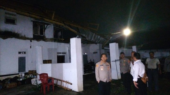 Kapolsek Depok Polresta Cirebon dan anggota cek rumah warga yang terkena puting beliung