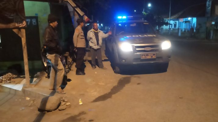 Giat Kepolisian dlm rangka cegah tangkal gangguan Kamtibmas, antisipasi C3, Genk motor dan tawuran menyampaikan himbauan kamtibmas dan mengajak berperan aktif memberikan informasi kamtibmas kepada warga dan anak-anak muda yang nongkrong agar segera membubarkan diri .