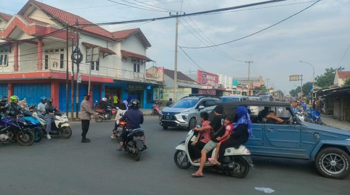 Cegah Kemacetan Arus Lalin, Personil Pos Pam Ciledug Polsek Susukan lebak Polresta Cirebon Laksanakan Pengaturan Arus Lalin.