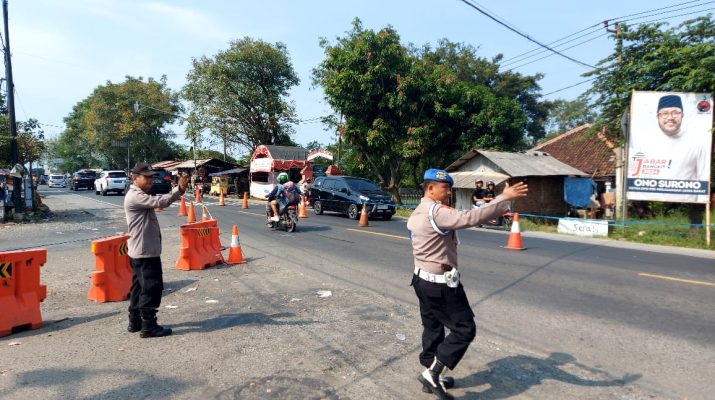 Cirebon – Di wilayah pantauan Pospam Ciperna Polresta Cirebon, anggota Pospam melaksanakan Gatur Lalin pasca Lebaran. (28/04/2023)