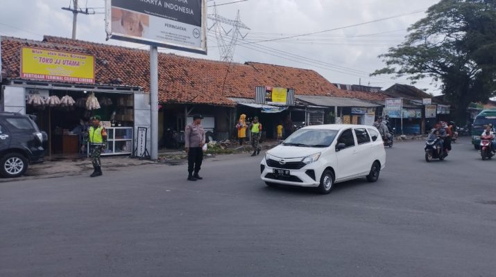 Cirebon – Di wilayah pantauan Pospam Ciledug Polresta Cirebon, anggota Pospam melaksanakan Gatur Lalin pasca Lebaran. (28/04/2023)