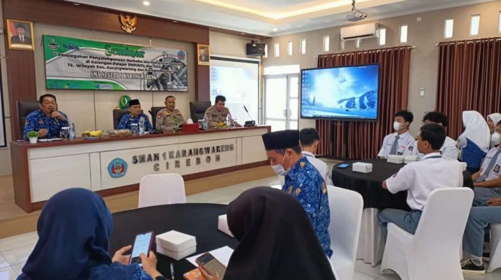 Karangsembung, Senin 22 Mei 2022 Waka Polsek Karangsembung Iptu umar jahid beserta Kanit Binmas melaksanakan Giat Seminar pencegahan lahgun narkoba dan kekerasan seksual kepada pelajar SMP/MTS dan SMA se Kec.Karangsembung dan Karangwareng di Aula SMAN 1 Karangwareng kec.Karangwareng Kab.Cirebon.