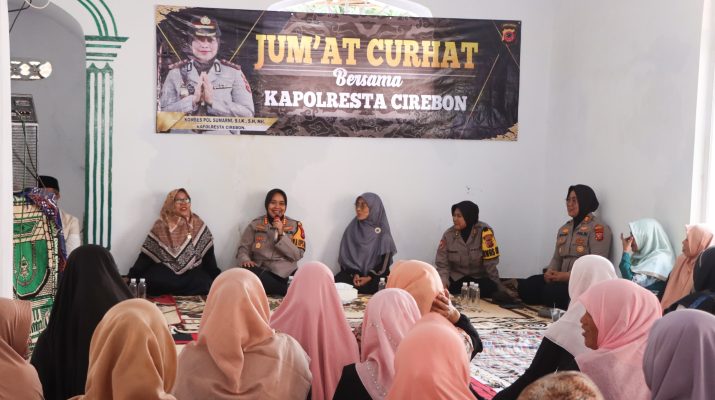 Jajaran Polresta Cirebon menggelar Jumat Curhat di dua lokasi, Jumat (16/2/2024). Di antaranya di Majelis Taklim Blok Unggul Balong, Desa Sindangjawa, Kecamatan Dukupuntang, dan Masjid Ar Rodloh, Kelurahan Kaliwadas, Kecamatan Sumber, Kabupaten Cirebon.
