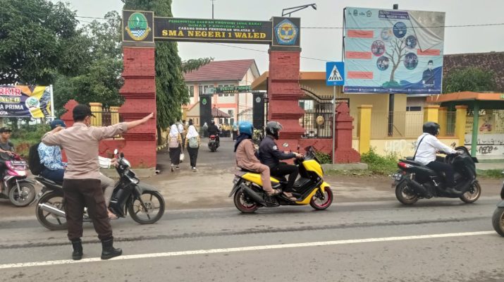KAB. CIREBON – Kegiatan rutinitas pada pagi hari yang dilakukan oleh anggota Polsek Waled Polresta Cirebon di antaranya ialah melakukan pengaturan lalu lintas guna memberikan pelayanan kepada anak sekolah dan. masyarakat agar merasa aman dan nyaman baik dalam berkendara maupun pada saat menyebrang jalan, selain itu juga untuk meminimalisir terjadinya kemacetan dan kecelakaan lalu-lintas hususnya di depan SMA Negeri 1 Waled kecamatan Waled kabupaten Cirebon jam 06.30 sampai selesai siswa siswi SMA Negeri 1 Waled Waled masuk kelas, Rabu (11/10/2023).