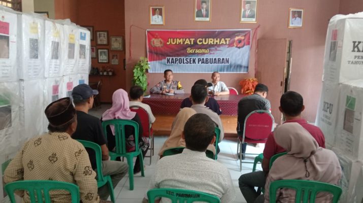 PABUARAN KAB. CIREBON – Guna menjamin keamanan dan ketertiban pasca pelaksanaan pemungutan suara Pemilu 2024, Kapolsek Pabuaran AKP Much. Soleh, SH. melaksanakan Koordinasi, komunikasi dan kolaborasi dengan Camat Pabuaran Bapak Dedi Supardi, SSos, Panitia Pemilihan Kecamatan (PPK) Sdri . Sri Suyanti, SPdi dan Pengawas Pemilu Kecamatan (Panwascam) Sdr. H. Sutisno, SPd. melalui Jum’at Curhat. Koordinasi dimaksudkan agar antara Pelaksana dan Pengawas Pemilu bersama dengan aparat keamanan selalu berkomunikasi dan berkolaborasi dalam seluruh tahapan pelaksanaan Pemilu sehingga tercipta situasi yang aman, nyaman dan damai ditengah-tengah masyarakat. Jum’at pagi (16/02/2024) pukul 09.00 wib.