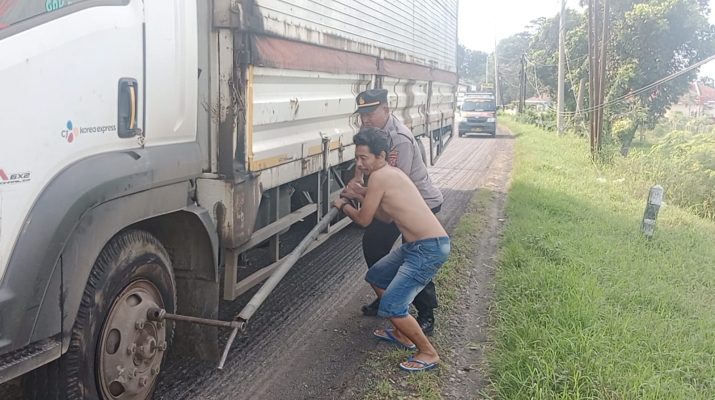 Memberikan layanan terbaik buat masyarakat. Kapolsek Susukan Polresta Cirebon memberikan bantuan kepada sopir yang pecah banĀ  mobil