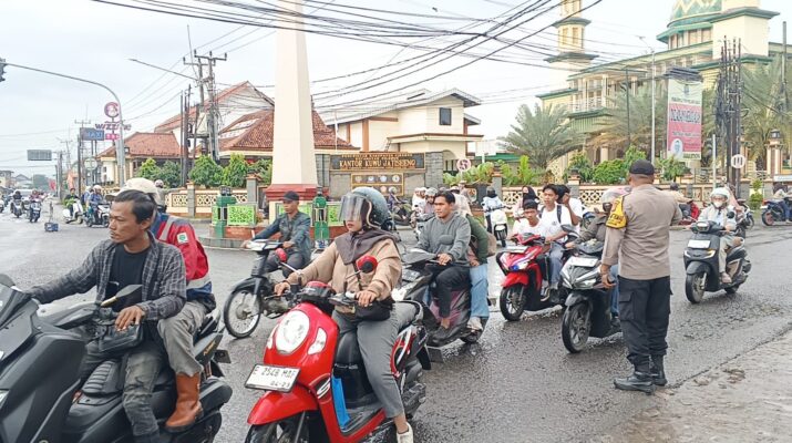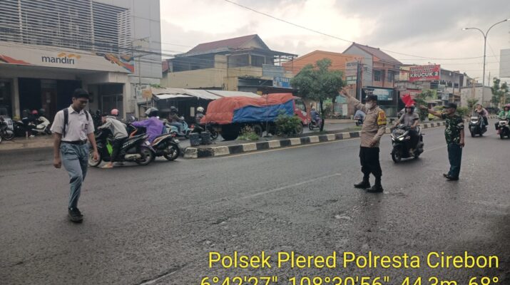 Plered, Cirebon – Guna memberikan rasa aman dan nyaman bagi pelajar serta pengguna jalan di pagi hari, personel Polsek Plered Polresta Cirebon melaksanakan kegiatan