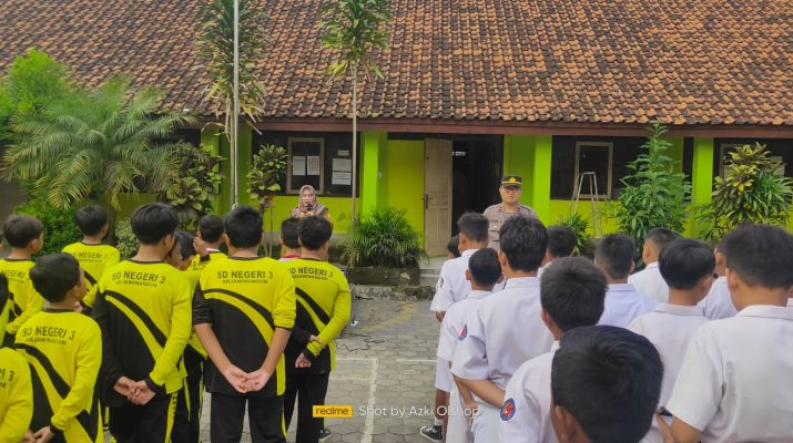 Panit 1 Binmas Polsek Arjawinangun Polresta Cirebon berikan pembinaan dan penyuluhan kepada siswa SDN 3 Arjawinangun.