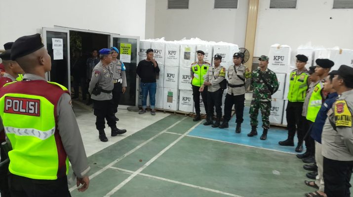 Dukupuntang – Minggu malam (18/02/2024) Personil Polresta Cirebon dibawah pimpinan Kasat Sabhara Polresta Cirebon Kompol Endang Sujana, S.H beserta Pawas dan Anggota melakukan pengontrolan terhadap gudang logistik Pemilu Tahun 2024 PPK Dukupuntang yang berada di GOR Kartini Desa Bobos.