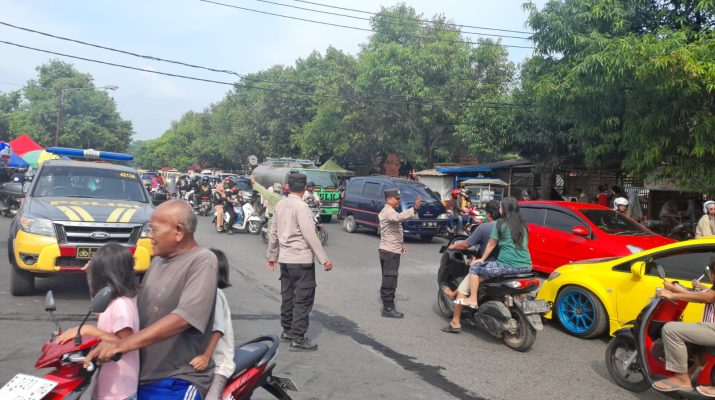 KAB.CIREBON – Anggota Piket unit Patroli Polsek Sumber Polresta Cirebon Polda Jabar Melakukan Patroli dan gatur lalin di area Pedagang Mingguan tepatnya di jl.Ki Bagus Rangin Kel Watubelah Kec Sumber Kab Cirebon, Minggu (21/05/2023).