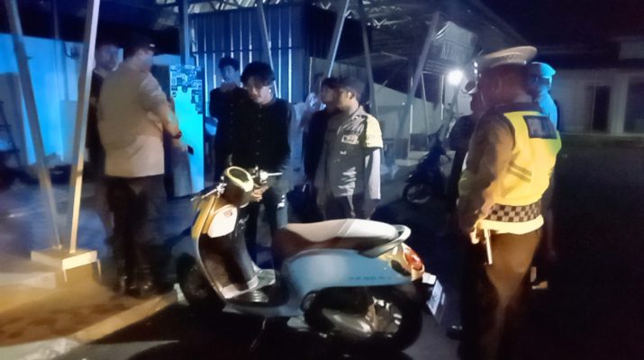 Patroli malam Polsek Arjawinangun sampaikan himbauan kepada remaja yang sedang Nongkrong.