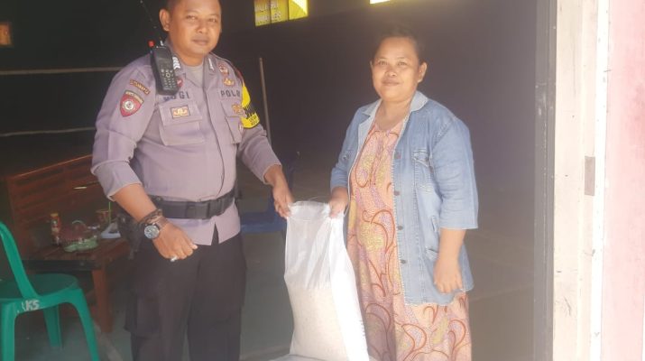 Pengamanan Pembagian Beras Bansos, Polsek Astanajapura Polresta Cirebon Ciptakan Kenyamanan