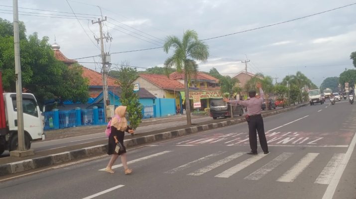 Jajaran Personil Polsek Plered Polresta Cirebon Polda Jabar melaksanakan Gatur Lalu lintas pagi di Jaln raya Plered Jln. Otista tepatnya depan SDN3 Tegalsari dan SMPN2 Plered Ds. Tegalsari Kec Plered Kab Cirebon