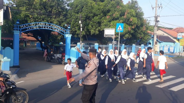 Pengaturan Lalu Lintas Pagi Hari Polsek Plered Polresta Cirebon memberikan pelayanan kepada anak-anak Sekolah dan masyarakat
