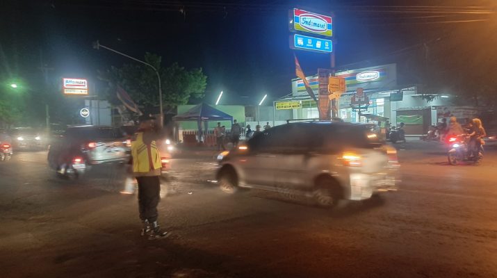 Personil Pos Pam Mountoya Laksanakan Gatur Malam, Antisipasi Kemacetan Arus Lalin.