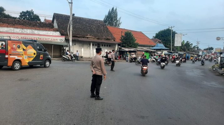 Plt Kapolsek Lemahabang Polresta Cirebon  AKP  Asep Ashari SH bersama anggota laksanakan Giat pengaturan lalu lintas pagi hari antisipasi kemacetan dan kecelakaan