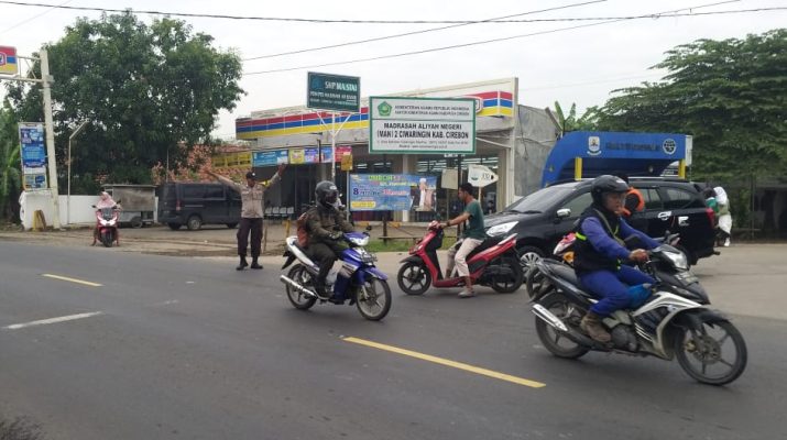 Personil Polsek Ciwaringin melaksanakan Gatur Lalu lintas pagi hari, di Jalan raya Cirebon – Bandung tepatnya di perempatan Blok Kasab Desa Babajan Kec. Ciwaringin Kab. Cirebon