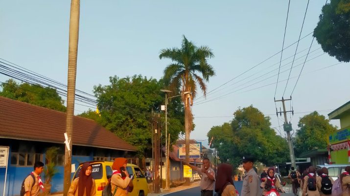 Polsek Dukupuntang Polresta Cirebon Laksanakan Gatur Pagi Di Depan SMK Manba’ul ‘Ulum