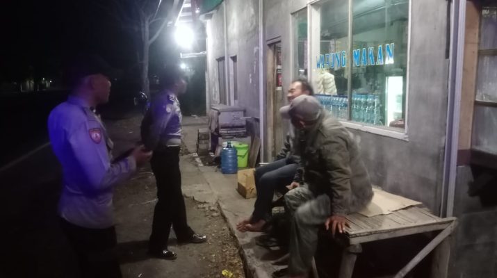 Giat Kepolisian dlm rangka cegah tangkal gangguan Kamtibmas, antisipasi C3, Genk motor dan tawuran menyampaikan himbauan kamtibmas dan mengajak berperan aktif memberikan informasi kamtibmas kepada warga dan anak-anak muda yang nongkrong agar segera membubarkan diri .