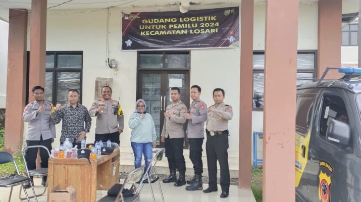 Losari – Kepolisian Sektor Losari Polresta Cirebon terus tingkatkan pengamanan logistik Pemilu di gudang PPK Losari Kecamatan Losari paska pemungutan suara pemilu 2024, Jumat (16/02/2024).