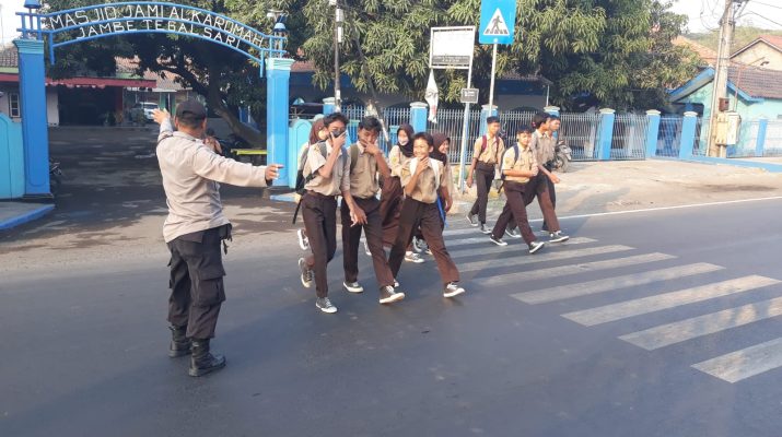 Personil Polsek Plered Polresta Cirebon Polda Jabar, melaksanakan Gatur Lalu lintas pagi di Jaln Raya Otista tepatnya di depan SDN3 Tegalsari dan SMPN2 Plered Ds. Tegalsari Kec Plered Kab Cirebon.