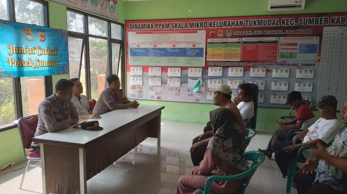 KAB. CIREBON – Polsek Sumber Polresta Cirebon menggelar program Jum’at Curhat guna menyerap aspirasi masyarakat dari semua kalangan secara langsung yang ada di Wilayah Kec Sumbet Program Jum’at curhat dilaksanakan oleh Waka Polsek Sumber Ipda Amir.AM bersama bhabinkamtibmas Kel Tukmudal Bripka Subpiyani dan lurah Tukmudal serta warga kel Tukmudal yang bertempat dikantor Kel Tukmudal Kec Sumber Kab Cirebon, Jumat (03/11/2023).