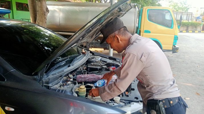 Kanit Samapta AIPTU ANANG TRI melaksanakan pengecekan dan perawatan rutin kendaraan dinas mulai dari sparepart, oli dan keberhasihan kendaraan dinas.